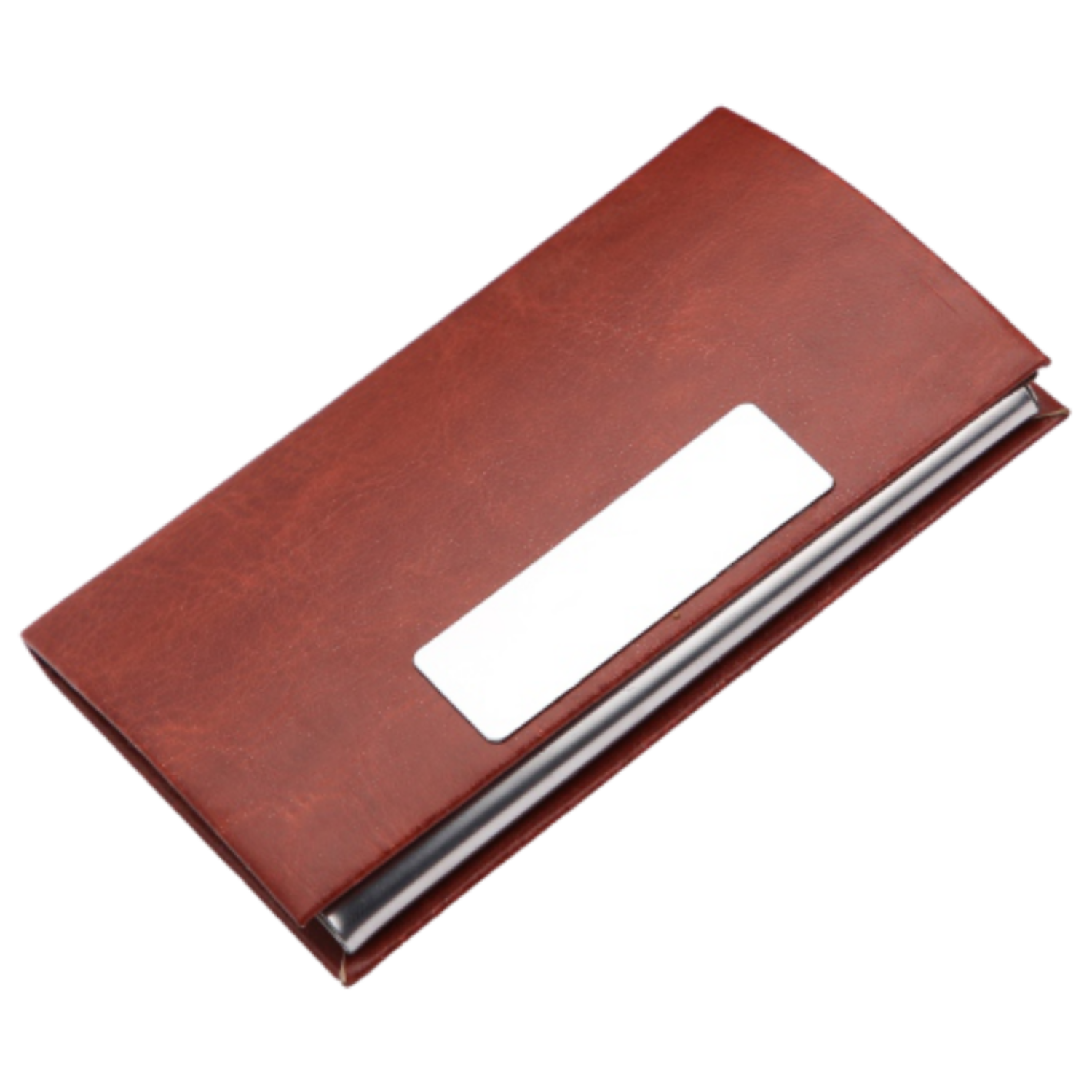 Brown PU Leather Business Card Holder with Metal Strip – Executive Style for Professionals