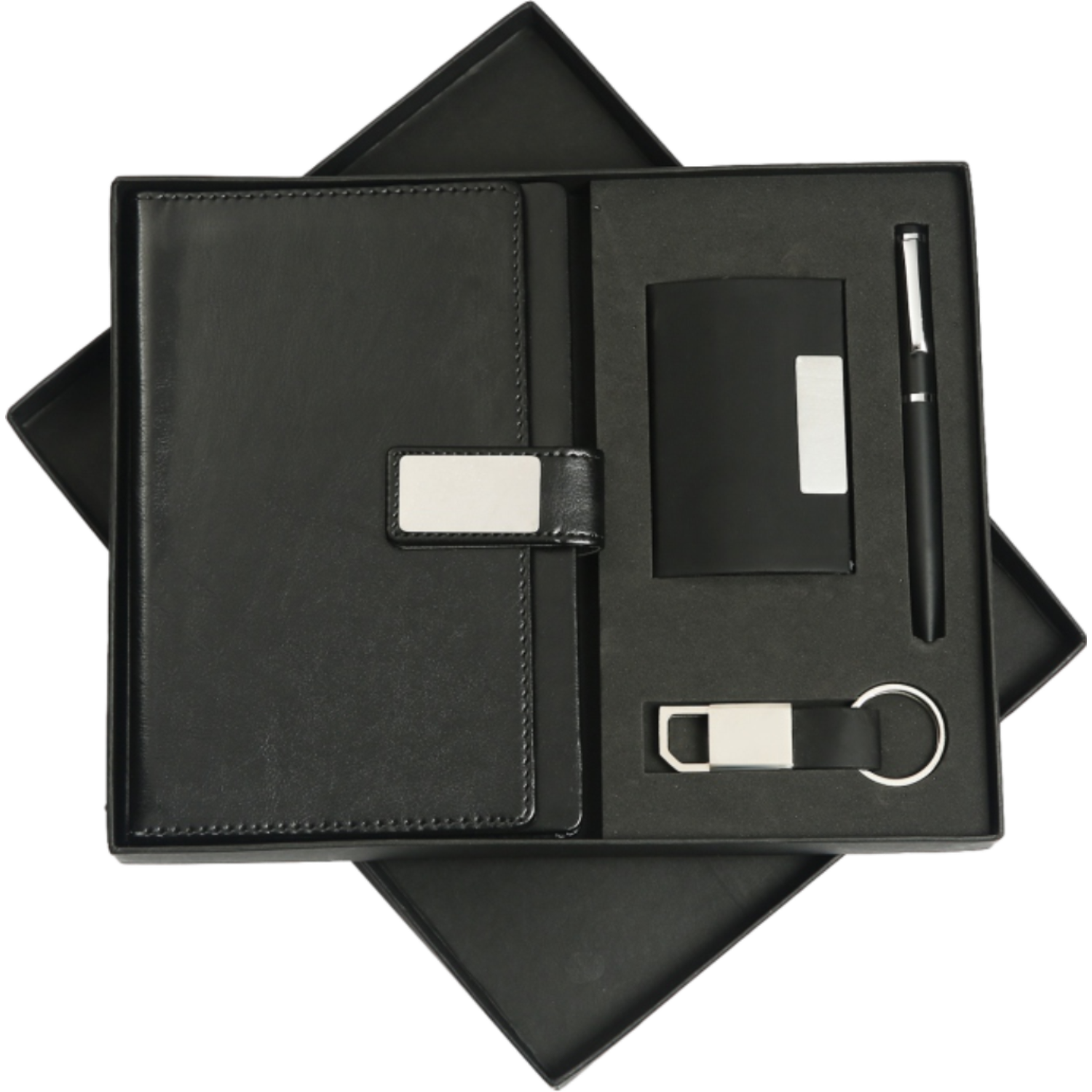 Crafted for timeless appeal and professional elegance, this Classic Leatherite Executive Gift Set offers a sleek all-black ensemble with silver accents. Ideal for corporate gifting, onboarding kits, or premium events, this set is a perfect blend of function and sophistication.