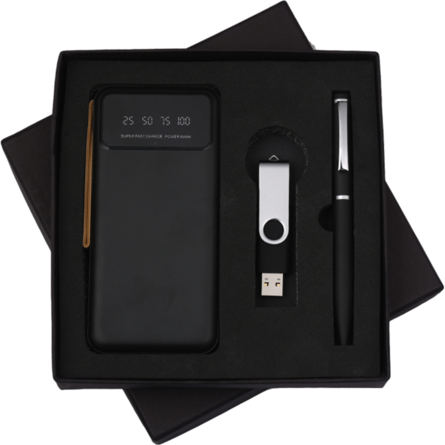 Compact 3-in-1 Corporate Gift Set with Power Bank, USB Drive & Pen