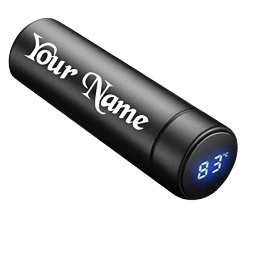 Premium stainless steel water bottle with a smart LED temperature display and personalized name print. Keeps drinks hot or cold for hours while adding a stylish, personal touch.